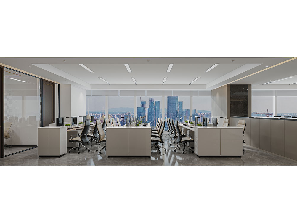 風(fēng)順集團裝修效果以 “大氣沉穩(wěn) + 現(xiàn)代高效” 為核心,整體采用深灰、米白為主色調(diào)搭配金屬線條點綴,凸顯企業(yè)質(zhì)感。前臺接待區(qū)用大理石背景墻嵌入集團 LOGO,搭配簡約大氣的接待臺與藝術(shù)擺件,營造專業(yè)第一印象;濟南辦公室裝修為開放辦公區(qū)采用模塊化工位設(shè)計,配備獨立收納與人體工學(xué)座椅,墻面穿插集團發(fā)展歷程掛畫與綠植,兼顧高效與舒適;會議室按規(guī)模配置高清會議系統(tǒng)與吸音材質(zhì),滿足不同商務(wù)需求;同時預(yù)留休閑茶水區(qū)與榮譽展示墻,既方便員工放松,也直觀傳遞企業(yè)實力,整體空間兼具品牌形象與實用功能。